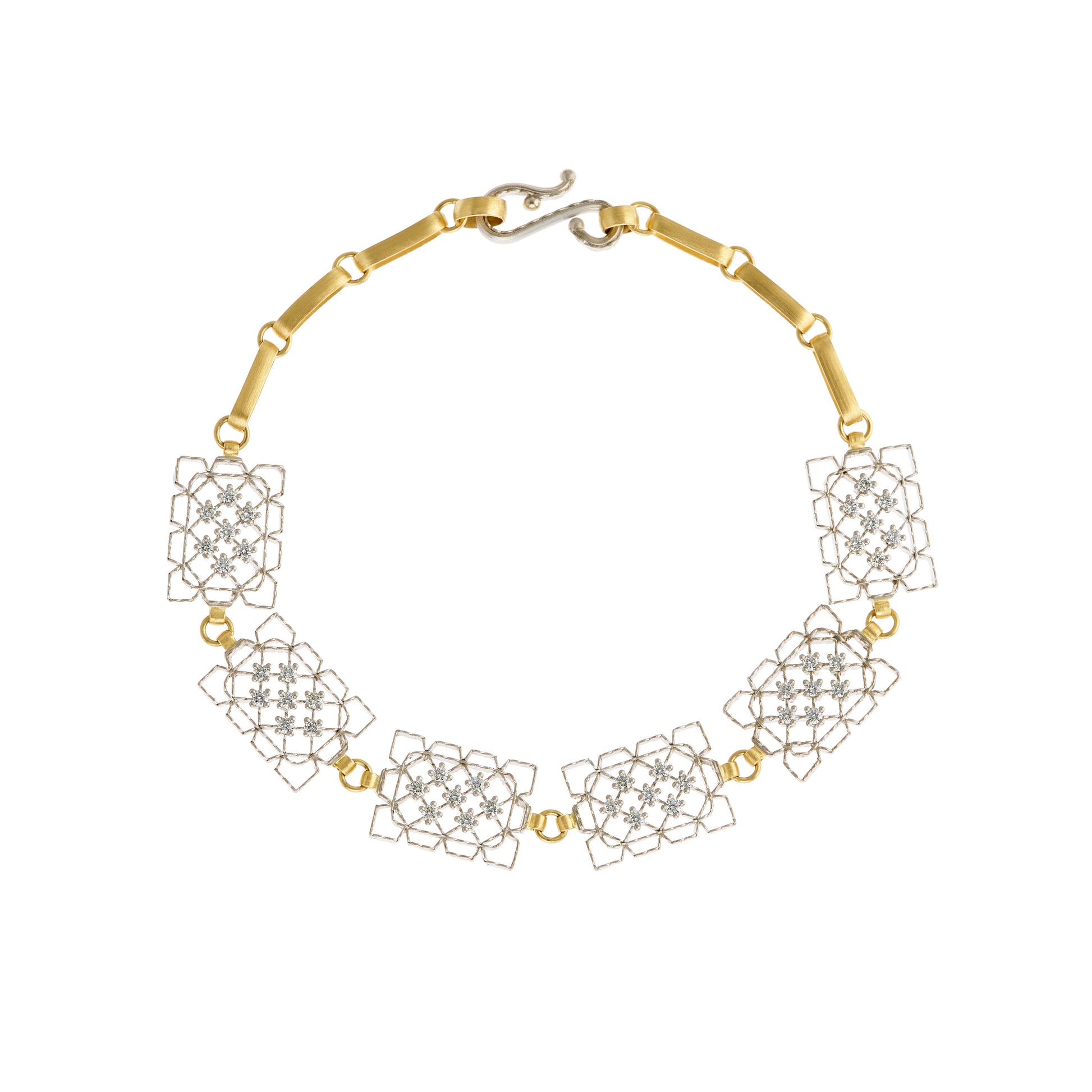 Lacy frames bracelet with white diamonds 0.42ct. in platinum and 18k gold. Length 6.75 inch.