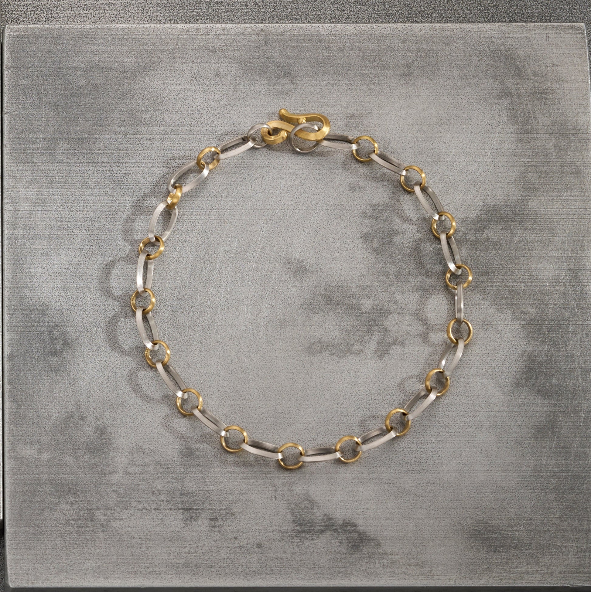 Oval&Round link unisex chain bracelet in platinum and 18k gold. Length 7.25 inch.