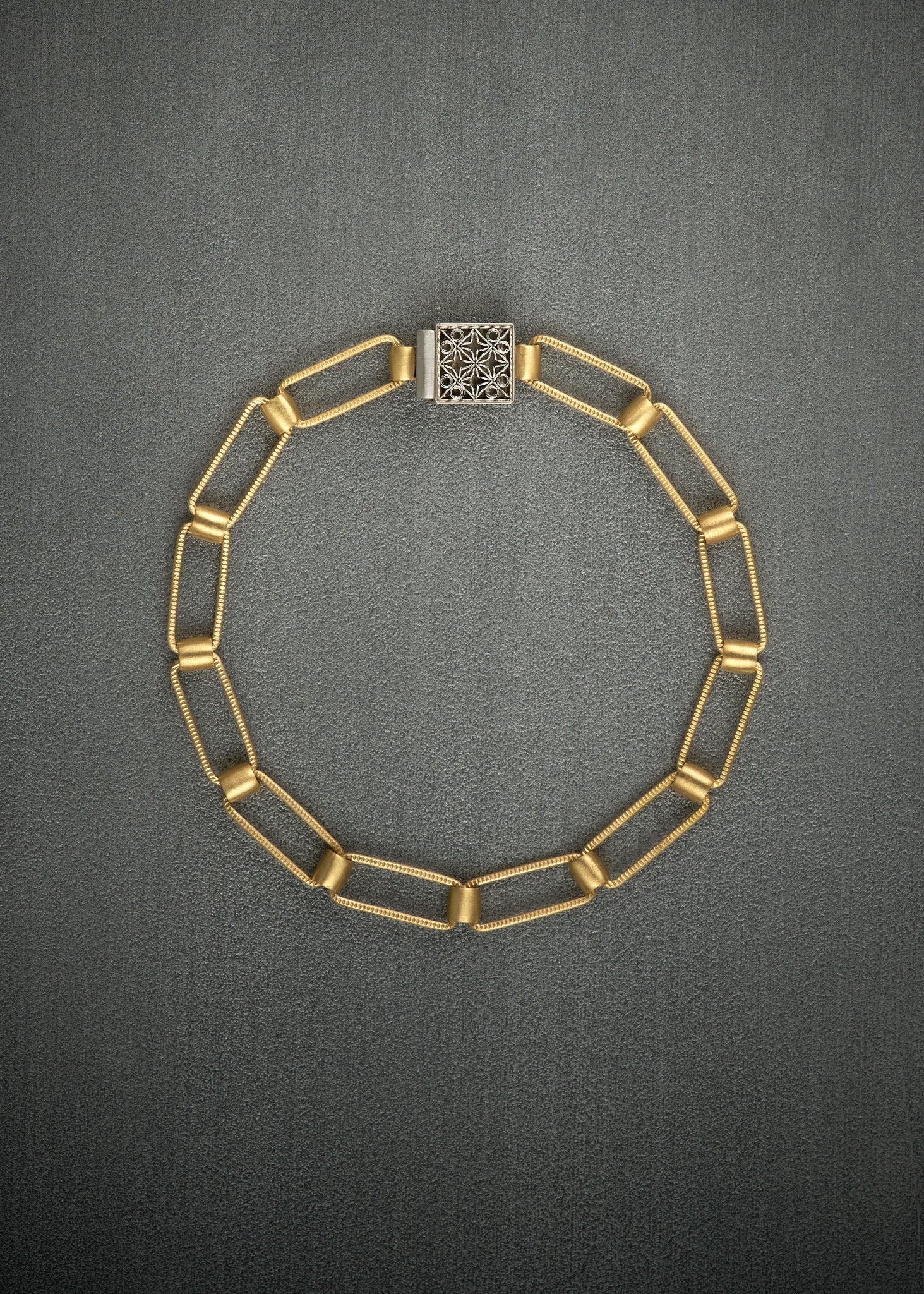 Square link bracelet in 18k gold with platinum box clasp. Length 6.75 inch