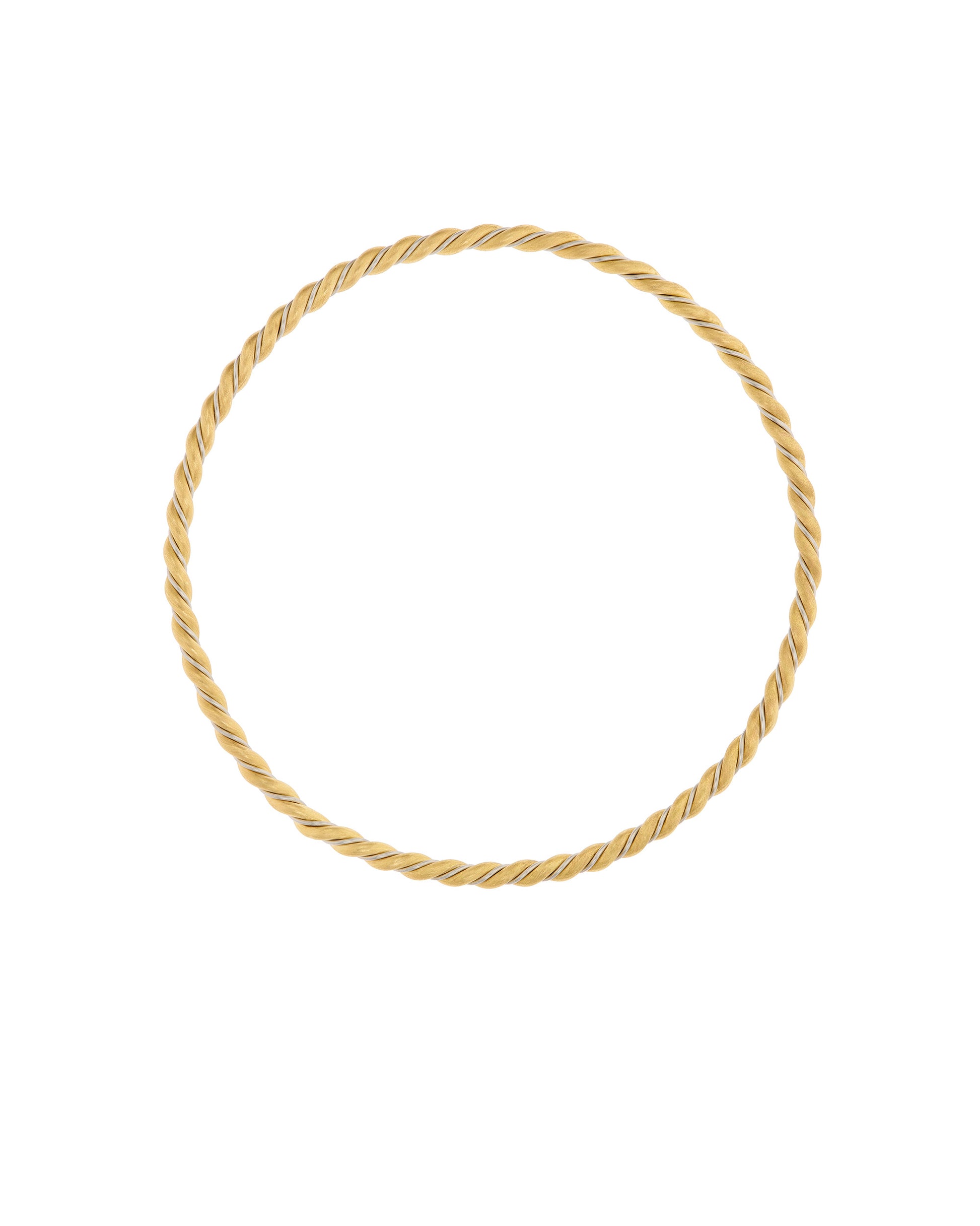 Twisted solid bangle in 18k gold and platinum. Size 2.5 inch.